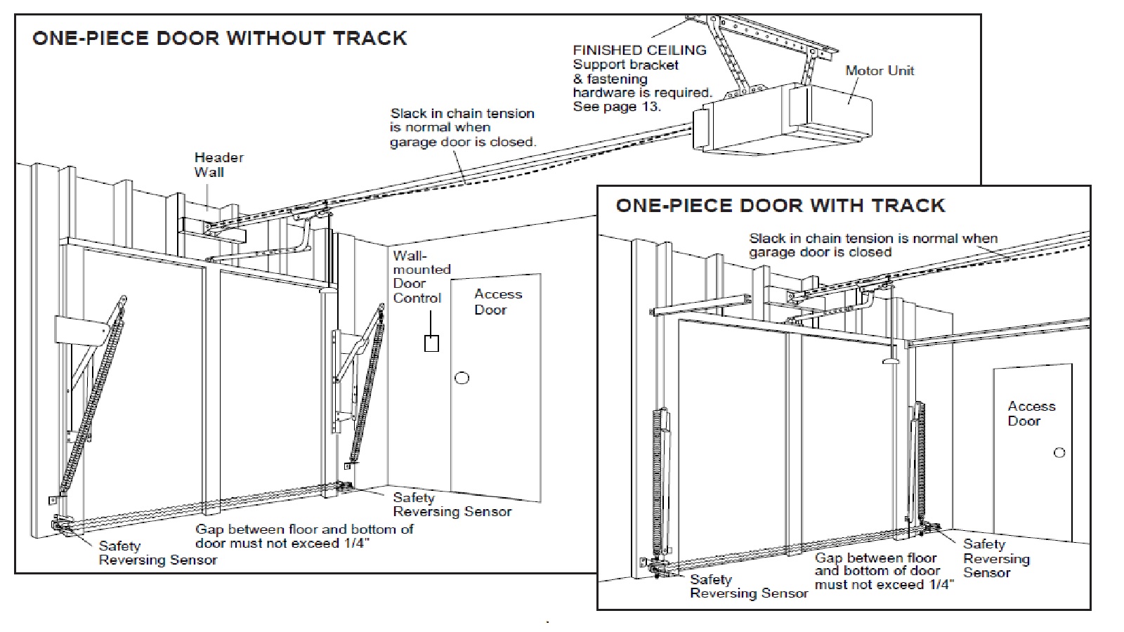 Low Headroom Garage Door Clearance Requirements - Reduces headroom requirements for installation.